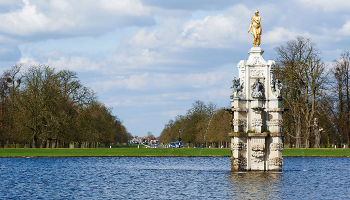 來到栗樹大道(Chestnut Avenue),道路兩旁都混雜地種植著馬栗樹和酸橙,從外觀看來它似乎與灌木公園里的其他道路沒有什么區別,但誰有能想到這里的植物種植類別的背后曾顯示了英國王室的野心呢?通過栗樹大道,就可以看到著名的戴安娜噴泉(Diana Fountain)。天氣晴朗的日子,倫敦的天空湛藍如洗,河水也變成深藍色的,美麗的戴安娜女神的雕像靜靜地站立在水面中央。如果運氣爆棚,還可以一觀戴安娜雕像底座噴水的盛景,咕嘟咕嘟的水柱從底座四角涌出的景象。