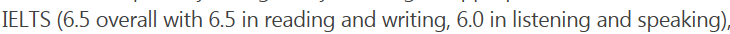 IELTS:6.5(寫作&閱讀6.5,聽力&口語6.0)