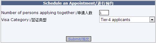 選擇“預約申請”后,你需要填寫自己想要申請的簽證中心所在城市,之后并在接下來的一頁中選擇申請人數并選擇“Tier-4 applicants”。再下一頁填寫時僅需要填寫標有紅色星號的內容,注意在填寫“GWF Number”那里時,你要填進去的是“GWF*********”這個格式,而不是直接寫號碼,如果漏寫“GWF”三個字母,預約是無法提交的。在你預約時間時,列表里的高亮時間是可選的,一般顯示的是當天之后的兩周時間,時段也根據自己的情況選。拿我舉例子吧,我是7月5日填的在線預約單,預約到的是一周后7月12日的上午10:45,我認為留一個星期時間準備材料足矣(我建議大家先預約,再去備材料,這樣不耽誤時間)。關于選時段我要分享一下我的血淚史:我選了上午10:45,按規定應該提前15分鐘(即10:30)到達簽證中心,后來我是當天中午12:55才走出來的,沒想到要呆這么久差點沒把我餓死,所以大家要慎重選擇你的申請時段!