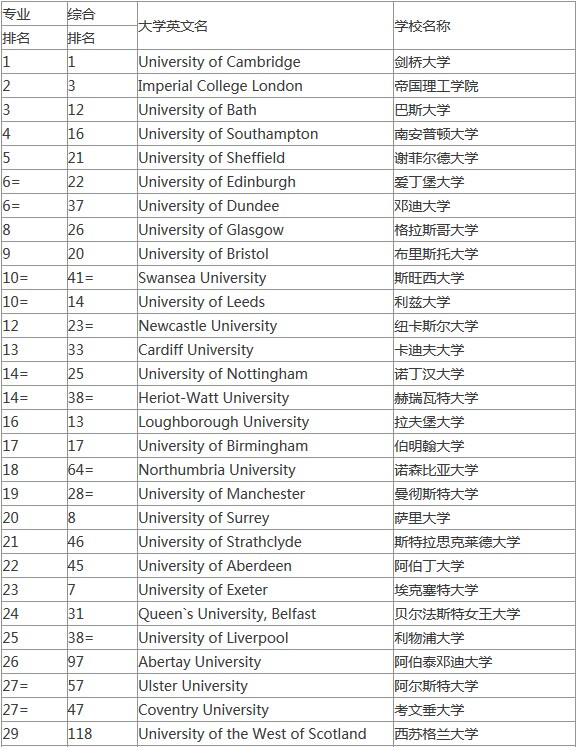 ??今年來,不僅是學習商科專業的同學會想要出國深造,越來越多學習工科專業的同學也選擇在就業前赴英留學充實一下自己,為更好的就業做好準備,今天優越教育的小編就為將前往英國學習土木工程的同學準備了2016年TIMES英國大學土木工程專業排名。