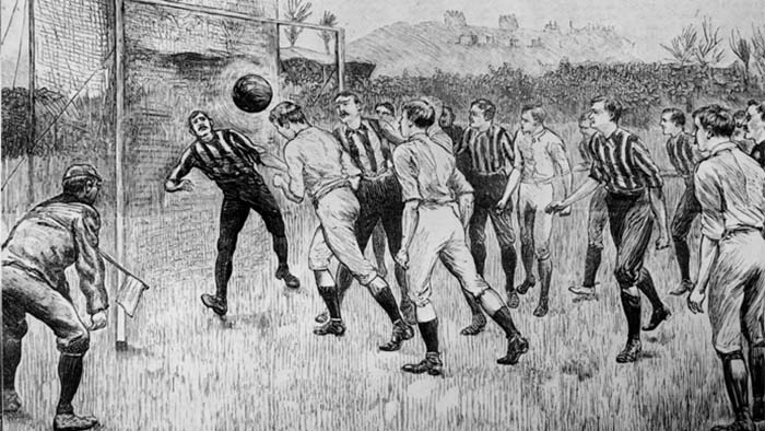 到了19世紀,足球運動重新得以恢復。這一時期的足球,已經有了現代足球的雛形,場地、人數、時間什么的雖然還沒有硬性規定,但是已經是非常靠譜的了,重要的是,足球已經發展成為一場有益健康的運動,而不是擾民的暴力活動。唯一比較倒霉的,就是當時的裁判了,在沒有完整規則的情況下,要負責記錄進球數、調節紛爭,一個不小心就會被雙方隊員暴打一頓。說實話,小編都不由得有點同情裁判了,成了“缺乏統一規則”的犧牲品。
