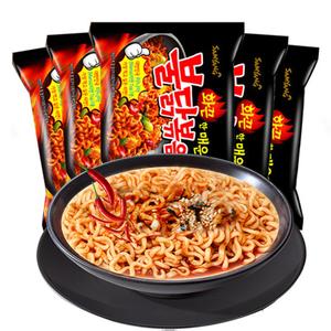 說到韓國泡面,還有一種口味不得不提,小編也是愛它愛到癡迷的程度,真的是好吃的無法用語言形容有木有。這是個拌面,不是泡面哦,泡好之后要把水都倒掉那種。非常辣,一口下去,立馬找到自己的胃在哪兒,因為馬上就有淡淡的燒灼感。要友情提醒大家?guī)拙洌@個泡面真的是相當辣,十分辣,就連小編如此能吃辣的人,吃完一碗之后,嘴唇都跟《東成西就》里面梁朝偉的香腸嘴一樣,而且聽說吃多以后會造成一丟丟的,啊咳,便秘(因為實在太辣了,排出體外都有一點困難)。所以說,不太能吃辣的同學,以及胃動力不太強的同學,還是量力而行啊!