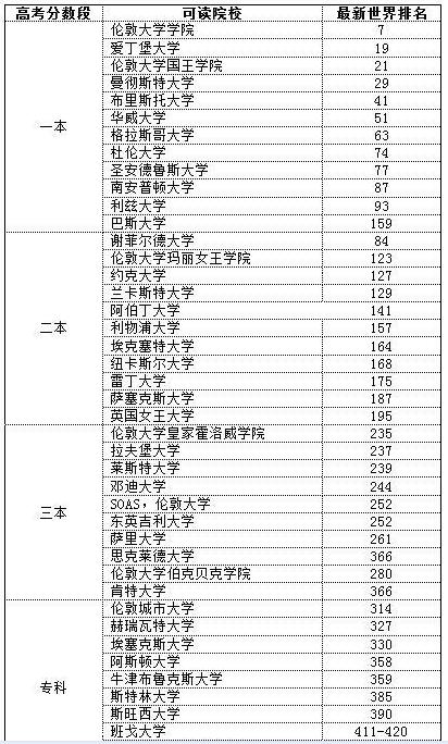 (3)學術要求:部分英國知名名校需高考成績