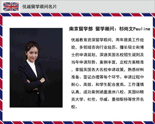 當前位置 :英國留學->優越留學顧問風采展示->國內高中畢業想去英國讀本預,均分多高申請名校比較穩?——優越教育Pauline老師經驗分享