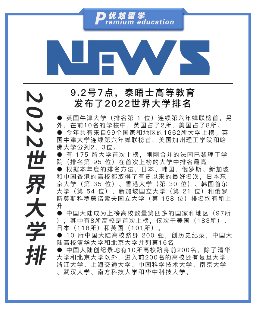 優越留學十多年來專注高端名校申請,在世界前100大學申請上有豐富的案例經驗