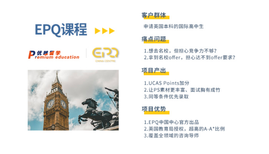 為了幫助同學們提升全方位的競爭力,讓申請更有保障!優越中外籍顧問團隊分別針對不同階段的學生推出了不同需求的軟背景提升項目。針對碩士申請的同學們,我們推出了“至遠系列”——科研項目+學科指導+實習項目三種服務產品。針對本科申請的同學們,我們推出了“至遠系列”——EPQ課程+學科指導+實訓項目三種服務產品。