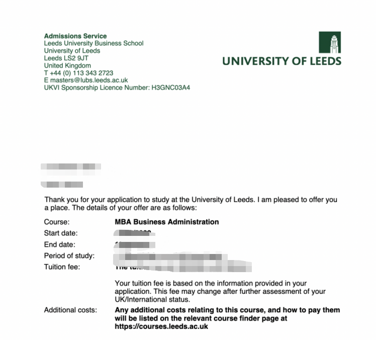 院校:University of Leeds 專業(yè):Master of Business Administration