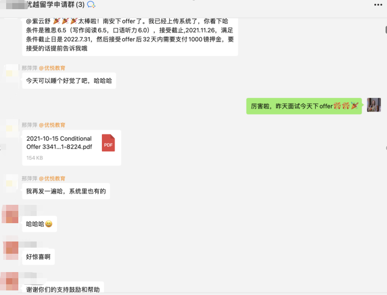 2. 文書也會提前去跟L同學溝通她自己的想法以及她在之前在工作經(jīng)驗里面的見解,定制出屬于L同學個性化的文書材料,更有在當時其他機構(gòu)都沒有的全職外籍老師在對其進行潤色和加工處理,較大化的幫助L同學的文書獲得招生官的青睞。