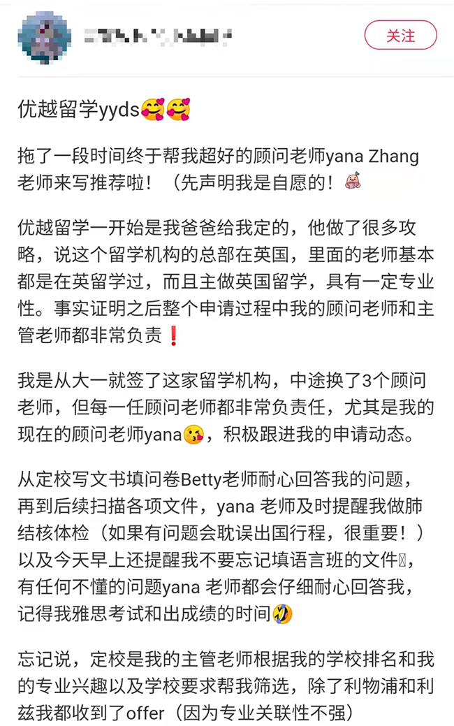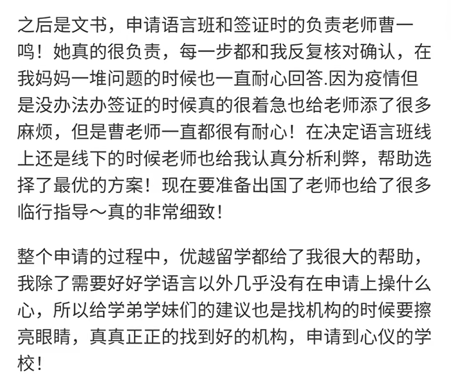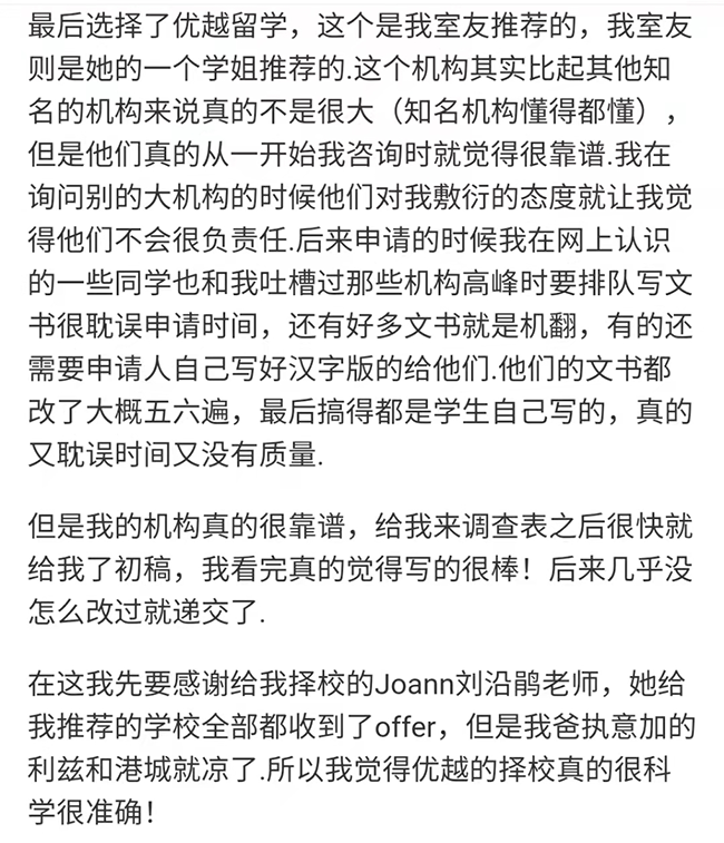 為了讓同學們能夠近距離感受優越留學的服務,我們將部分同學對優越服務的評價,做了一個分享合集。