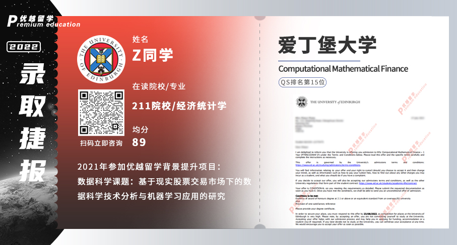 牛津大學數學和計算金融科學offer(Master of Science in Mathematical and Computational Finance):海本,數學專業,均分90+,21年參與過優越留學兩段背景提升的項目(企業財務數據分析與預測)(基于模型分析與預測綜合研究)