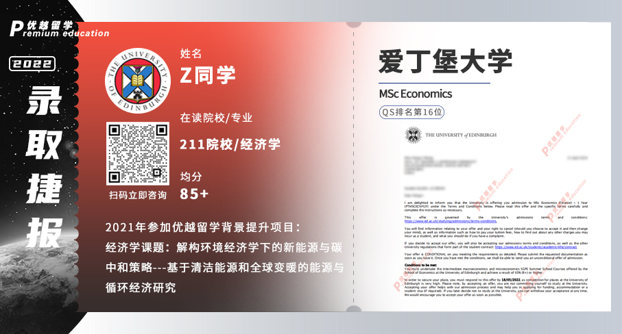 帝國理工大學經濟與商業戰略碩士offer(Economics and Strategy for Business):海本,經濟學專業,均分80+,軟背景提升方面參與了優越留學提供的商業分析師助理的實習。