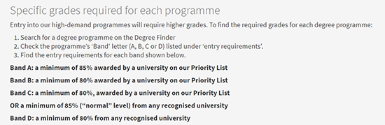 在2022年7月21日的時候,愛丁堡大學商學院又更新了官網信息,針對2023Fall入學的中國學生要求從BAND B調整到了BAND A,即申請者的第一學位在優先名單中,且均分不低于85分。