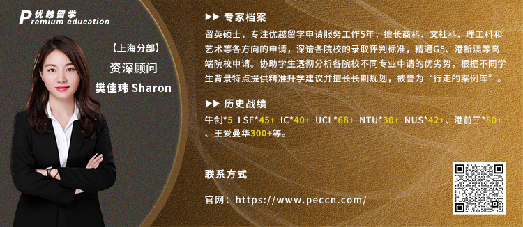 留英碩士,專注優越留學申請服務工作五年,經過時間的沉淀,擁有豐富的成功案例。擅長商科、文社科、理工科和藝術等方向的申請,深諳各院校的錄取評判標準,精通G5、港新等高端院校申請,協助學生透徹分析各院校不同專業申請的優勢與劣勢,能夠根據不同學生的背景和特點提出精準的提升建議,擅長長期規劃,為學生制定最適合自身發展的留學方案。精準的方案協助數百名學生成功獲得offer,其中不乏牛津、劍橋、倫敦政治經濟、帝國理工、倫敦大學學院、新國立、南洋理工,港大,港科技、港中文等名校。耐心與細致的跟進,周全的考慮每位學生的申請進度與流程,全稱高度關注,及時為學生答疑,獲得家長與學生的一致好評。堅信每一位學生都是平等的,擁有追求知識,提升自己的機會,因此能夠設身處地的為每位客戶竭盡全力申請到夢校。專業度強、耐心負責、注重細節、被譽為“行走的案例庫”,不辜負每位學生和家長的期盼與信任。