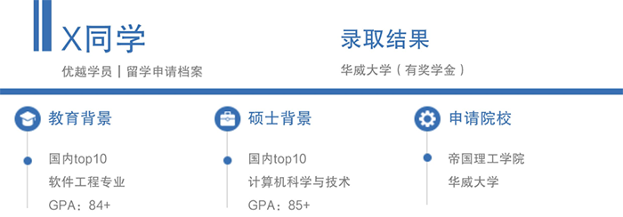 X同學綜合條件很優秀,有3年相關工作經驗,做過9段項目,博士想申請計算機方向人工智能領域。但因為沒有高質量的論文發表,申請時也沒有雅思成績,X同學擔心自己很難申到計算機方向,生出跨專業申請的念頭。根據多年申請經驗,優越顧問老師不建議跨專業申請。因為博士研究需要在本專業理論和實踐的基礎上進一步深入研究更細分的專業領域,除非是一些以計算機專業為核心的交叉學科。而X同學的項目經驗和工作經驗豐富,本專業方向更有競爭力。這堅定了X同學初心,繼續申請計算機方向。