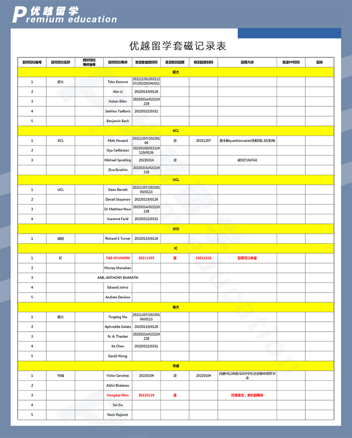 事實證明tutor的選擇沒有錯,先后得到了IC和華威大學的教授回復,并積極保持聯系。期間針對X同學的研究計劃,tutor也多次進行修改,并根據導師反饋不斷調整數據,與X同學不斷確認,直到導師滿意為止。