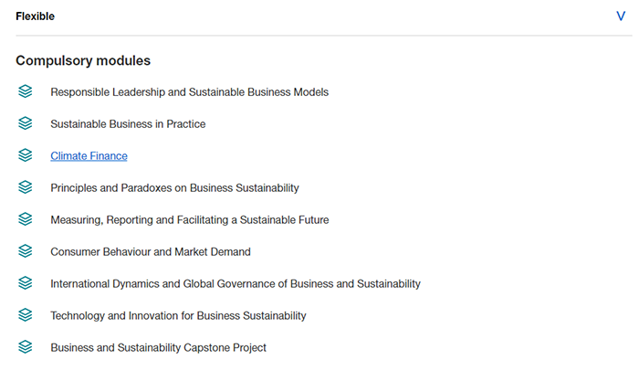 UCL的商業與可持續發展碩士(MSc Business and Sustainability),其學習課程也會涉及到商業的概念和框架,例如“負責任的領導和可持續的商業模式”、“商業可持續性的原則和悖論”、“消費者行為與市場需求”等等課程。