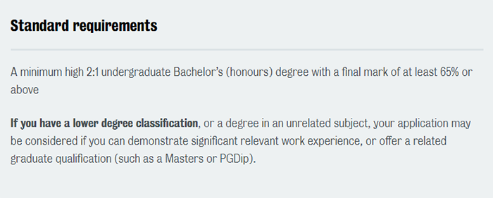 申請要求:最低資格是英國大學較低的二等學士學位或同等標準的海外資格,List名單內的中國大學學生平均80%。該項目將于2023 年 1 月 9 日至 3 月 31 日開放申請