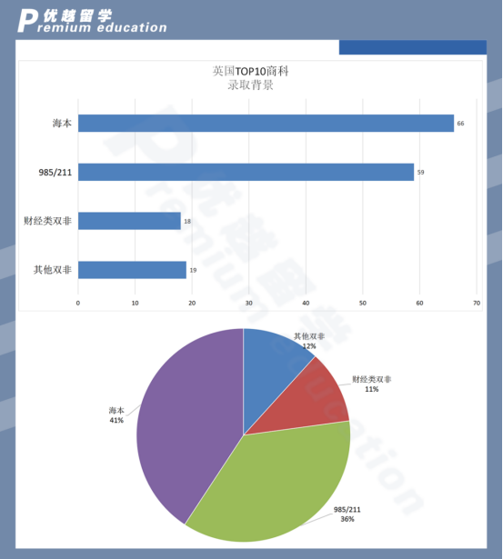 優越當前收到英國前10名校offer的同學中,985/211的占了半數以上,其次是海本背景的學生。