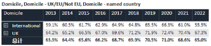 2022年度UCAS共收到了3048480份申請(qǐng),共發(fā)放了1980590份offer,官方公布的offer率約為65%,比前一年下降了3.6%。