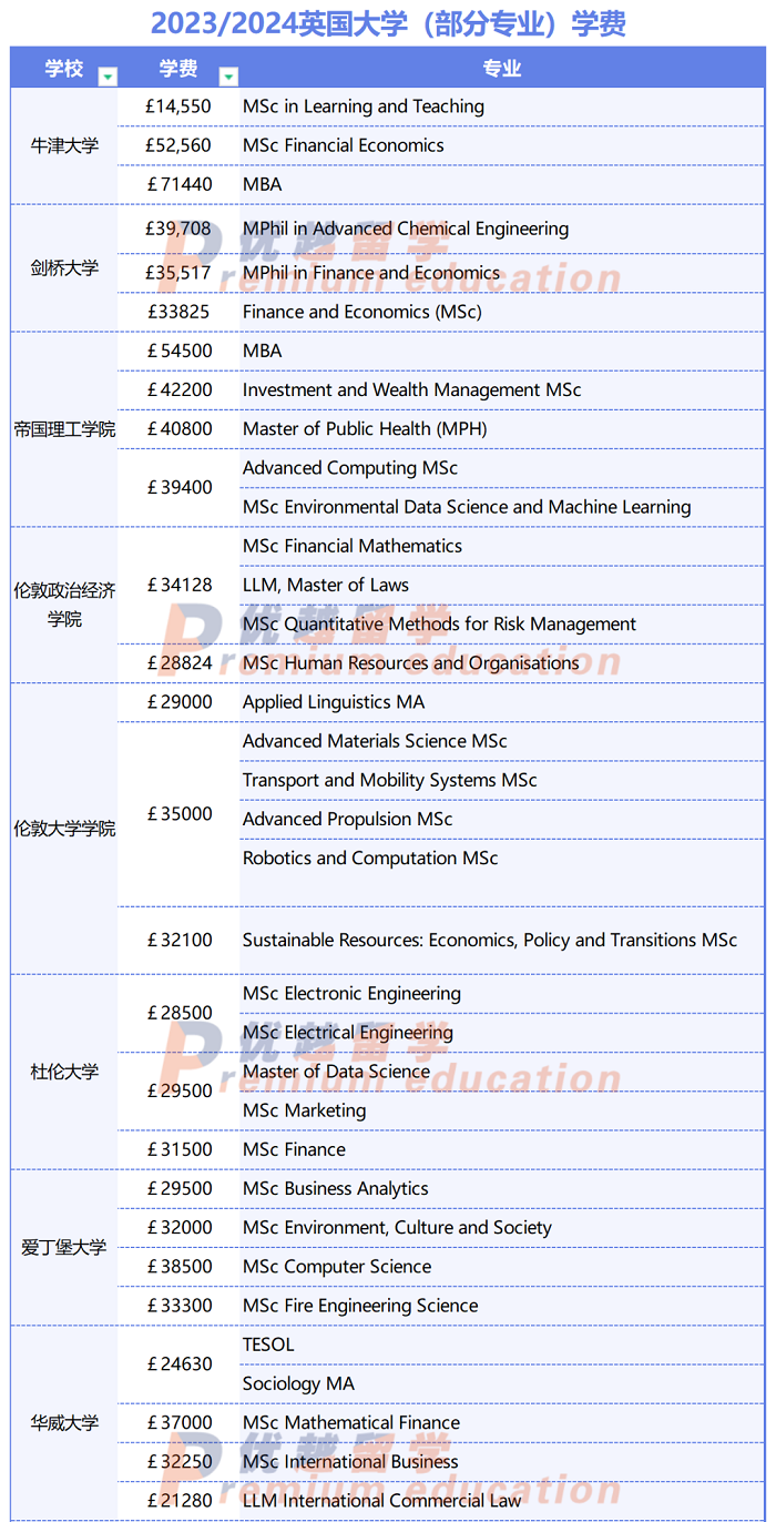 優越君這里為大家整理了QS排名Top 100的英國大學研究生部分熱門專業的學費。