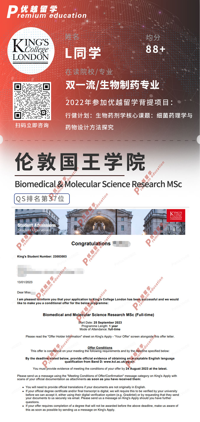 倫敦國王學院 生物醫學與分子科學研究專業: