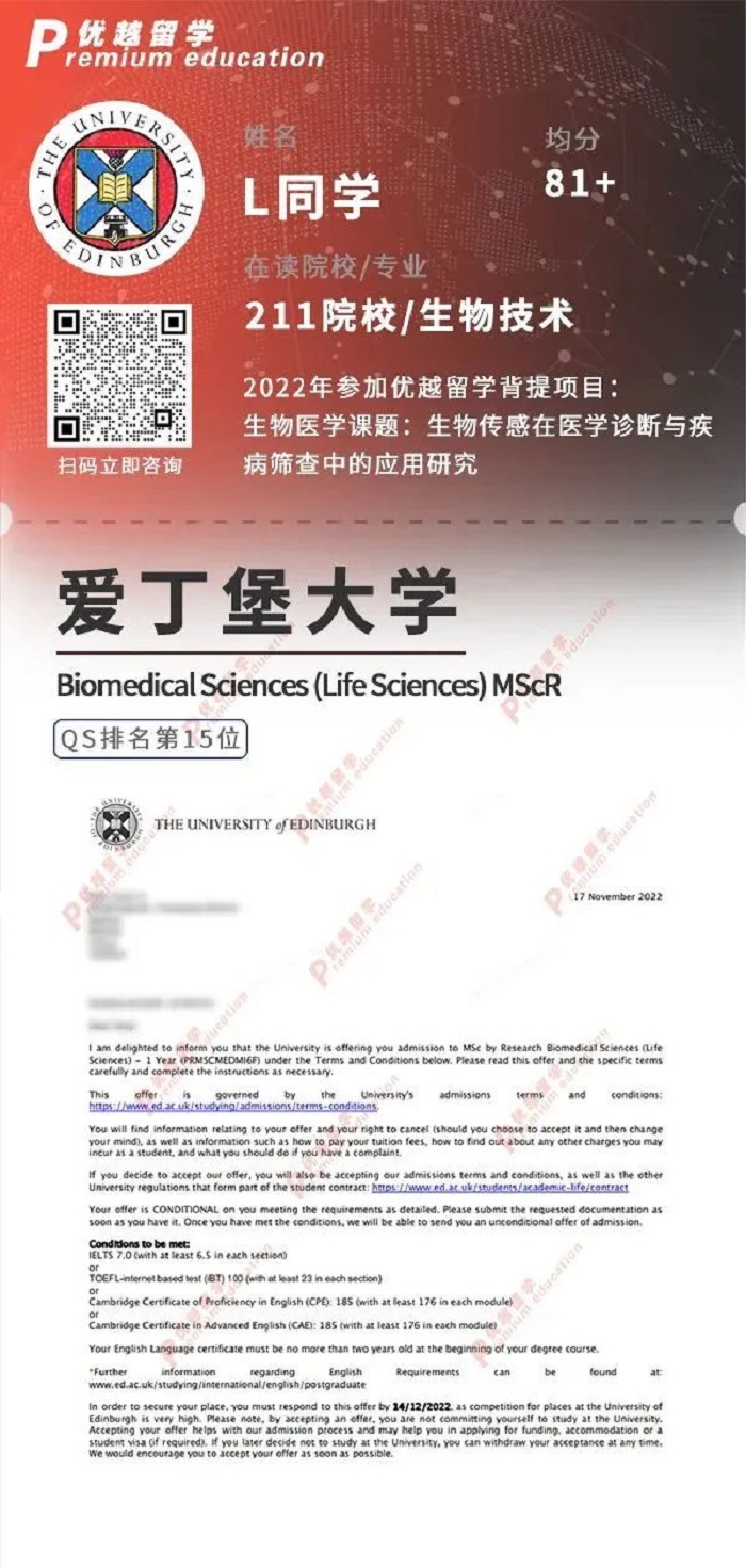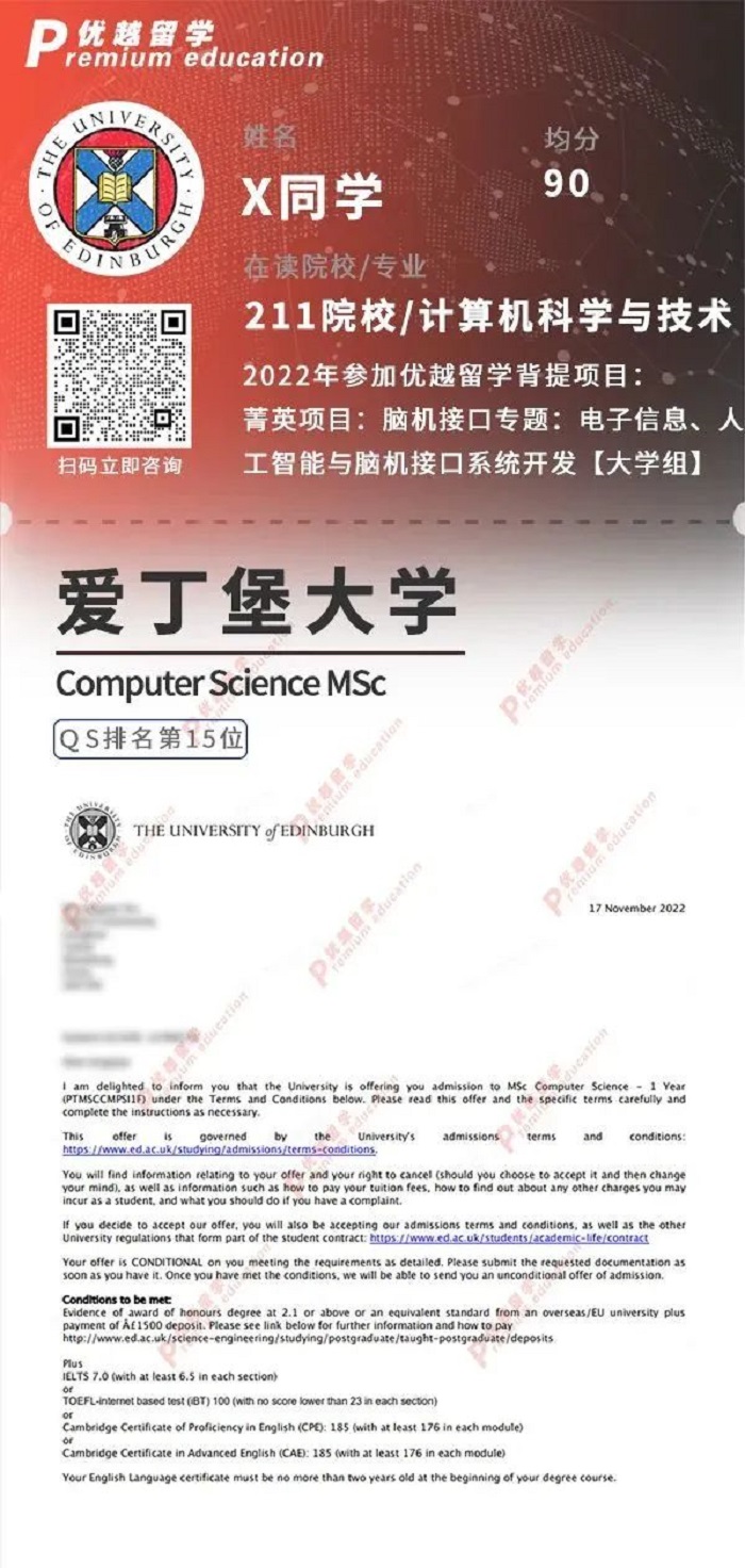 優越也有學員成功拿到愛大CS專業的offer: