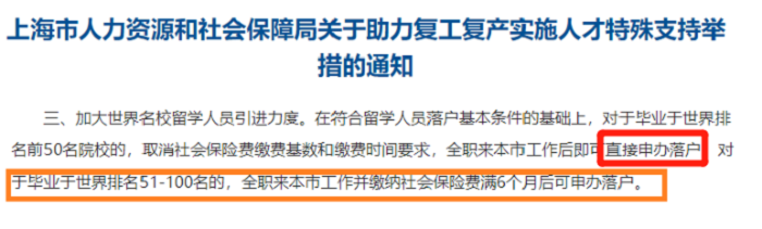 就比如去年,上海人社局宣布放寬留學生回國落戶政策,給世界大學排名Top100院校的畢業生,給出了極具吸引力的優惠政策: