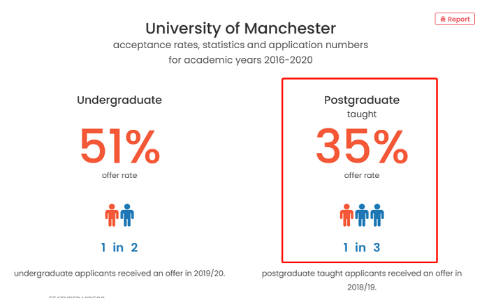 英國著名的六所紅磚大學之首,英國羅素大學集團創始成員之一,曼徹斯特大學平均錄取率約 35%,這兩年數據呈現下降的趨勢。