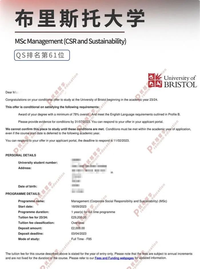 布里斯托大學(2023QS排名第61位)