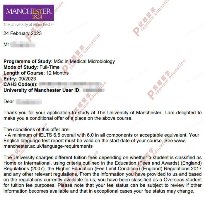 錄取:曼徹斯特大學Medical MicrobiologyMSc
