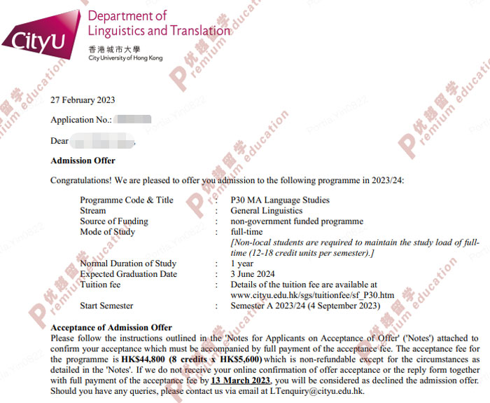 錄取:香港城市大學MA Language Studies