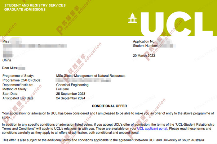 經(jīng)常在知乎上看大家提問說,沒有語言成績可以申請英國的大學嗎?其實語言成績對英國留學申請是很重要的,最好是建議大家能夠在提交材料之前能夠準備好語言成績,但是其實沒有語言成績其實也是可以申請英國大學研究生的。今天給大家介紹下最近優(yōu)越君收到的一個案例,總結(jié)來說就是無語言成績也能拿下UCL自然資源全球管理專業(yè)offer。