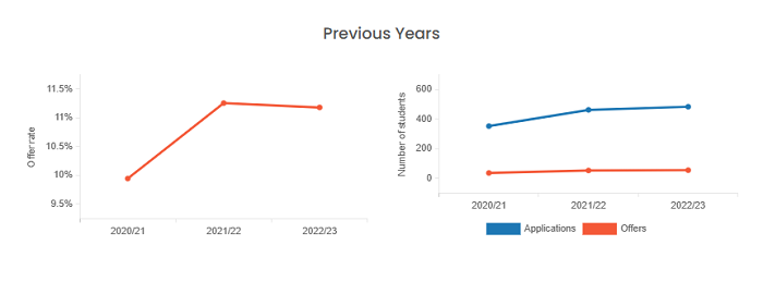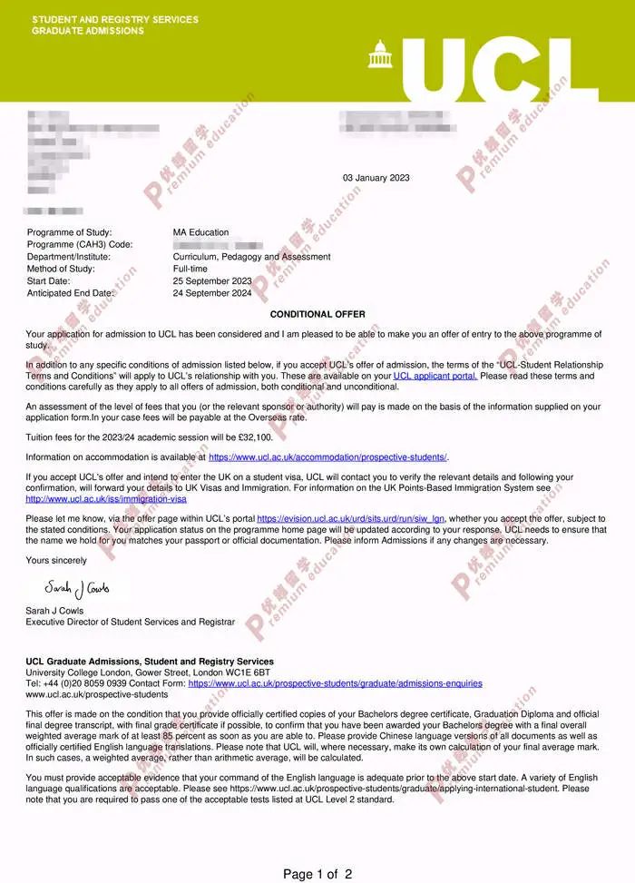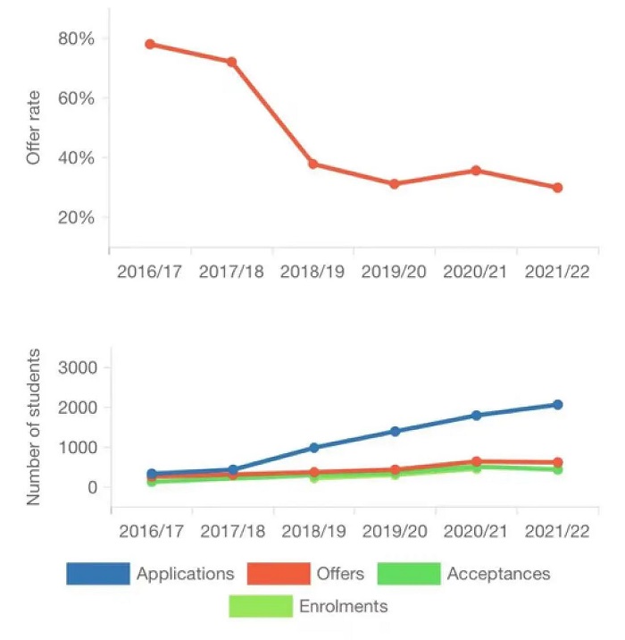 UCL的教育學在全球教育相關的社會科學領域中的影響力,2021/22學年吸引了約2072為留學生申請,錄取率約30%。