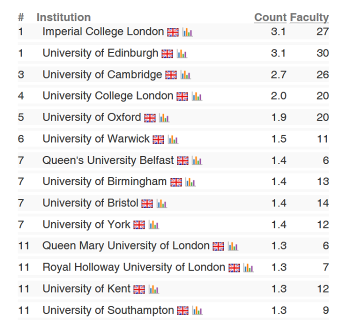 帝國理工、愛丁堡大學、劍橋大學占據榜單前三。