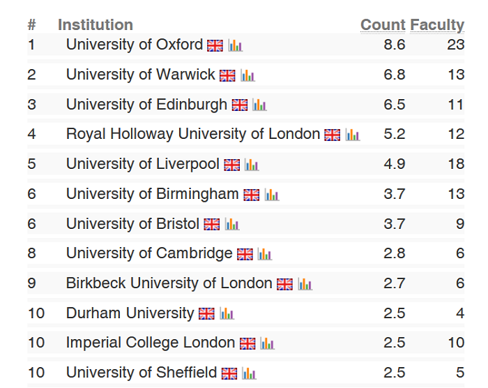 牛津大學、華威大學、愛丁堡大學占據榜單前三。