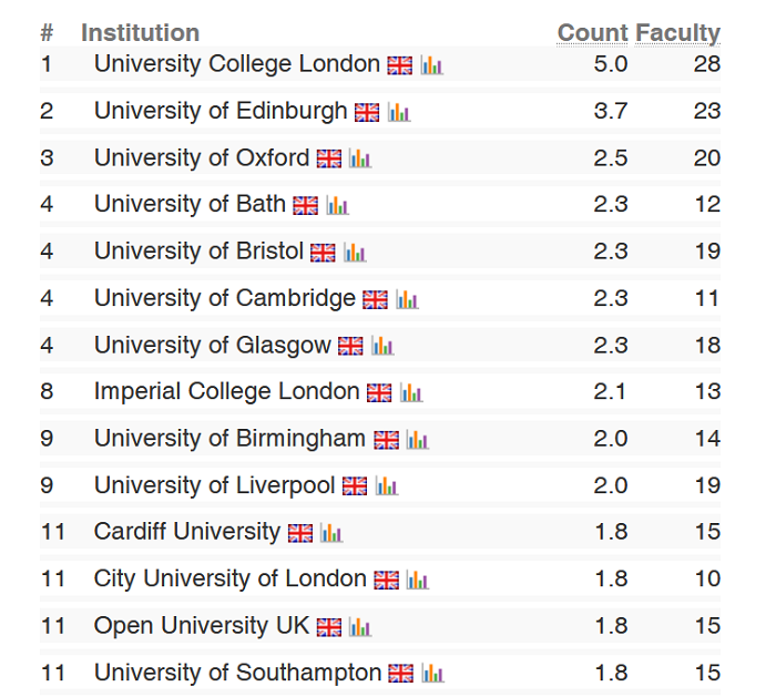 UCL、愛丁堡大學、牛津大學占據榜單前三。