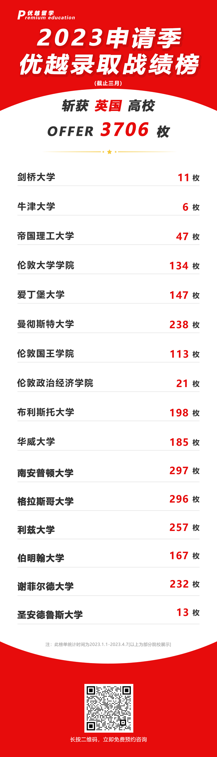 23fall申請季,優越留學英國名校錄取成績單,不僅數量多,質量還高!