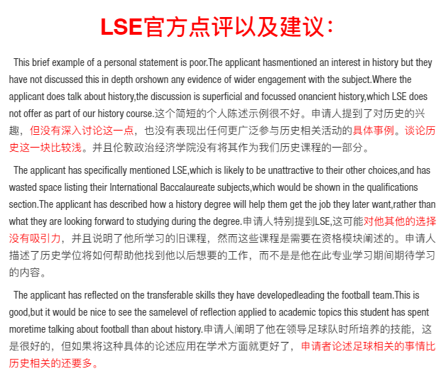 總的來說,通過LSE官方的點評我們也可以看出來本篇反面文書范本還是太寬泛了,很多問題也是很多學生容易犯的,比如:不相關的回答、內容繁雜浮華、顧左右而言他,目標不明確等。