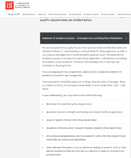 接下來我們就看看LSE官方給出的關于PS個人陳述的一些基本要求是什么,在結合拆分講解一篇之前優越申請到LSE經濟學的文書,看看到底該如何針對這些要求寫出一篇讓招升官滿意的PS呢?