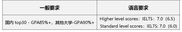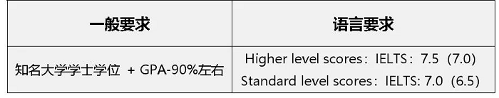 *如申請者本科背景未達到學校要求但滿足2年以上相關工作經驗也可以申請。