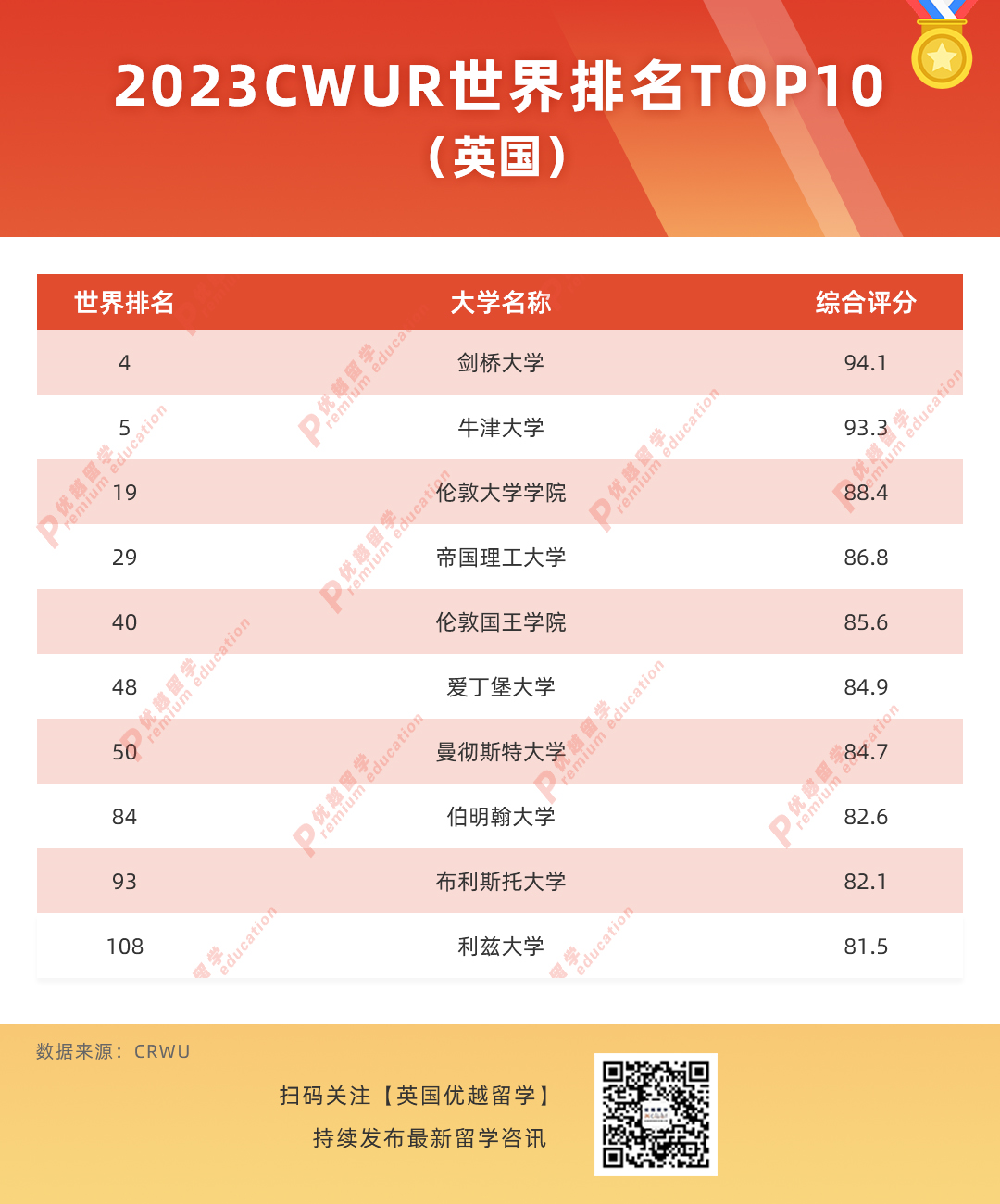 今年英國共有93所大學在CWUR排行榜上嶄露頭角,其中劍橋和牛津穩居全球前五名的寶座,而整體而言,共有9所英國學府成功躋身世界百強,是除美國外top100大學最多的國。