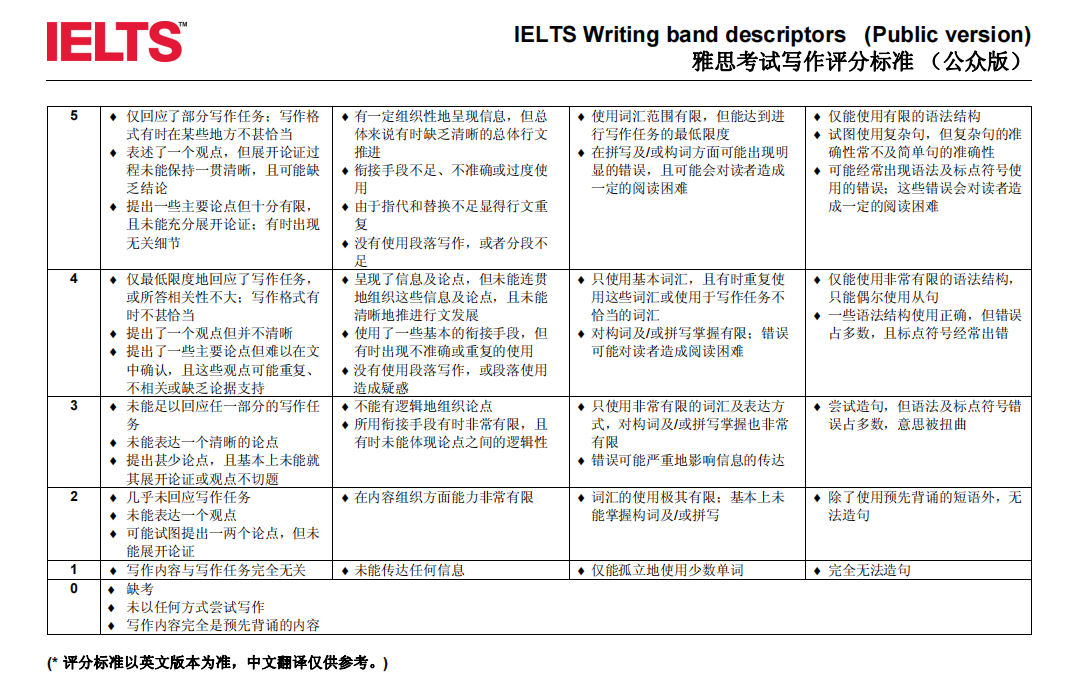 在這里,我們也直觀展示一下,新舊版雅思寫作評分細則。