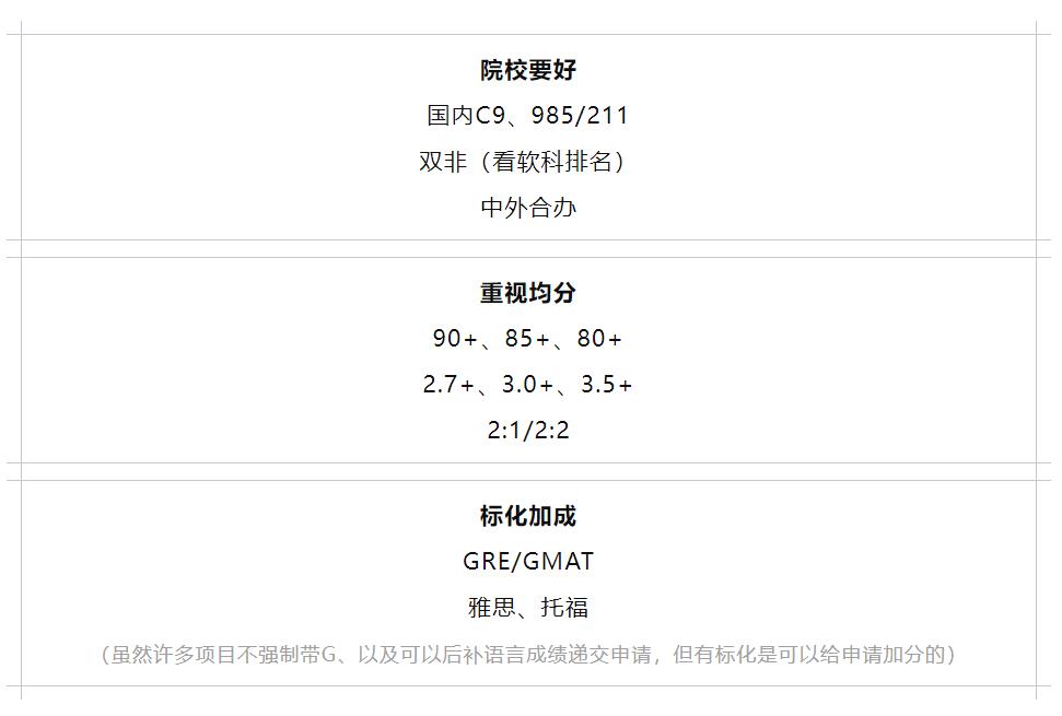 1-3月選校期間,沒做過評估就隨意確定了申請的院校——結果全是卷王項目,競爭更激烈,比如: