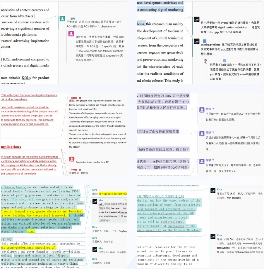 以下是一些修改的案例(文檔批注的形式)以及服務老師和Tutor提供給學生的RP大綱等參考材料: