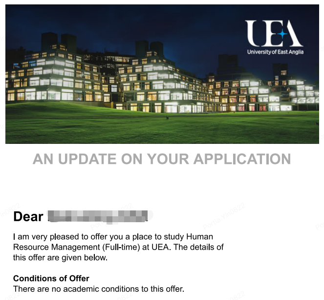 錄取院校:東英吉利大學(xué)