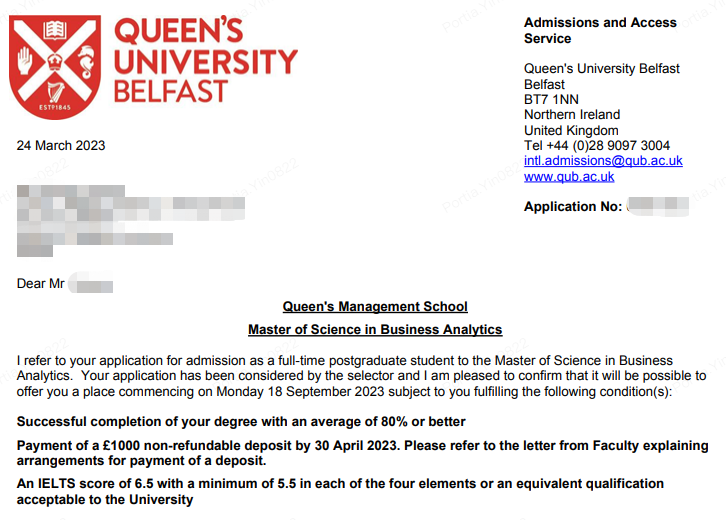 錄取院校:貝爾法斯特女王大學(xué)