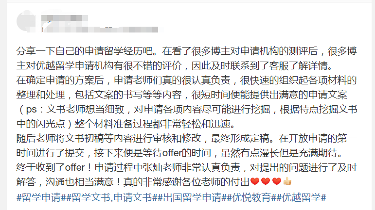 為了讓更多同學近距離感受優(yōu)越留學的服務質量,我們整理了部分同學對優(yōu)越留學的評價,形成了一份分享合集。