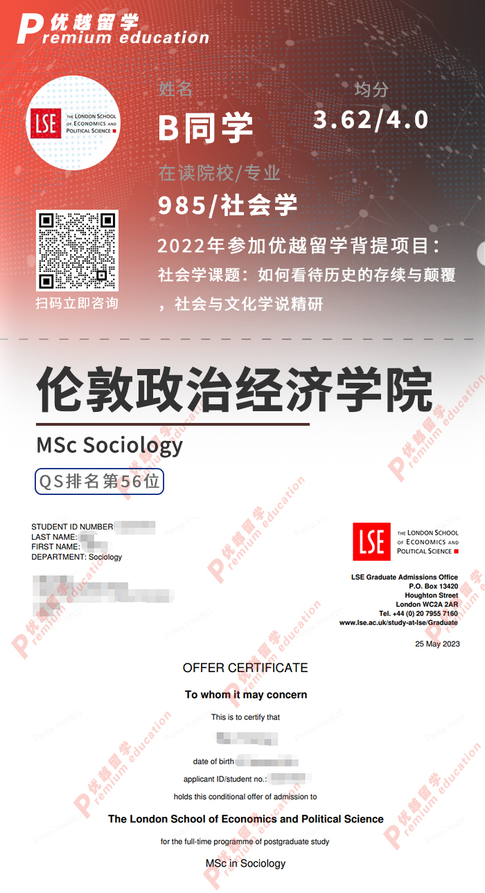 同學背景:985院校社會學專業(yè)3.62/4.0