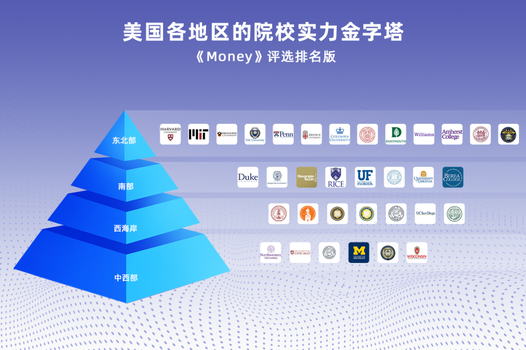 亮點2:美國各地區的院校實力金字塔