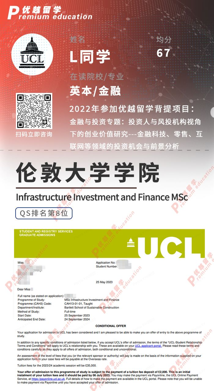 錄取專業:Infrastructure Investment and Finance MSc